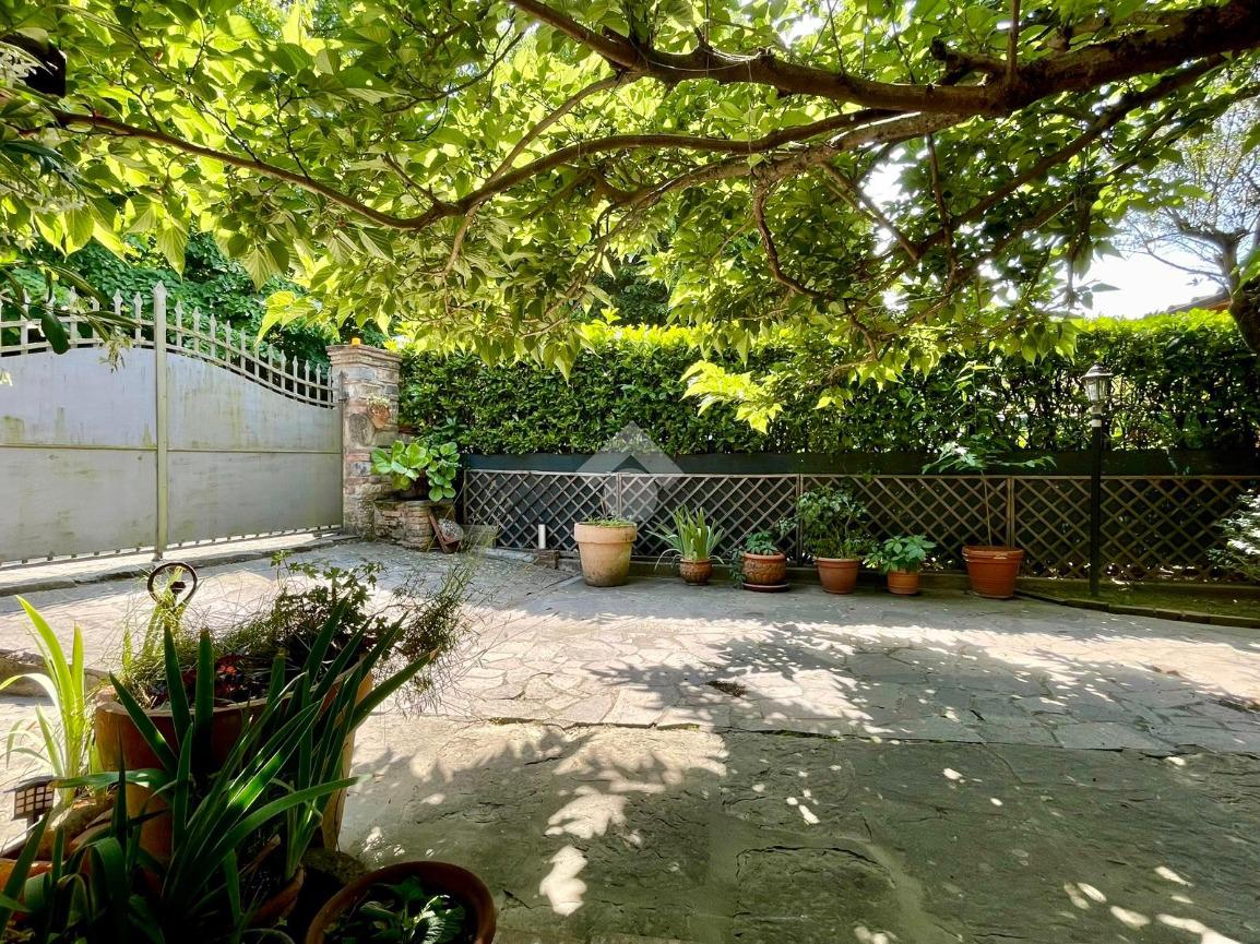 al piano terra troviamo come prima cosa la resede privata piastrellata, con accesso carrabile, nella quale è presente un barbecue in muratura ed uno spazio arredato con tavolo e sedie, perfetto per godersi momenti di convivialità e relax all'aria aperta;
