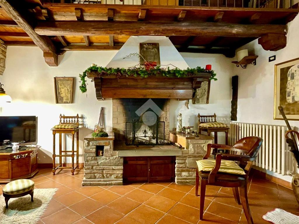 attraversando il portone d'ingresso ad accoglierci troviamo una sala con camino in pietra ed un grazioso soppalco in legno uso libreria;
