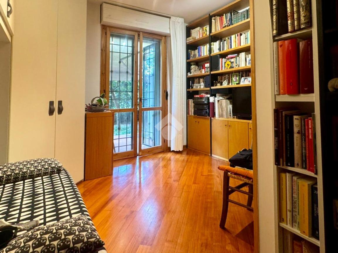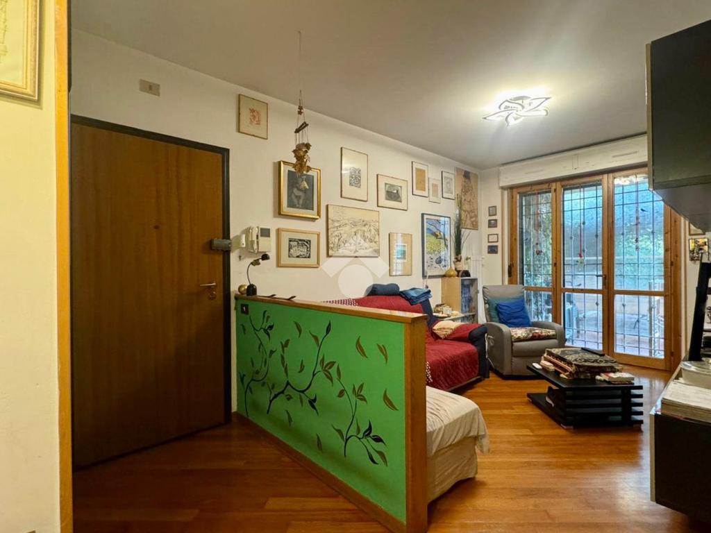 In contesto tranquillo e ben servito, proponiamo la vendita come nuda proprietà di un appartamento, posto al piano terra, dotato di doppio giardino privato (anteriore e posteriore).